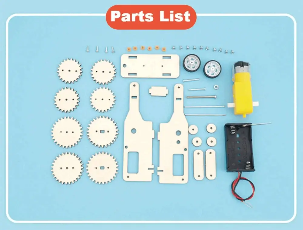 Ce kit complet contient tous les matériaux nécessaires pour réaliser le montage, ainsi que des instructions claires et faciles à suivre, permettant à chaque enfant de fabriquer son propre véhicule pas à pas. En assemblant les pièces et les engrenages, les enfants découvrent concrètement comment l’énergie électrique se transforme en mouvement mécanique.