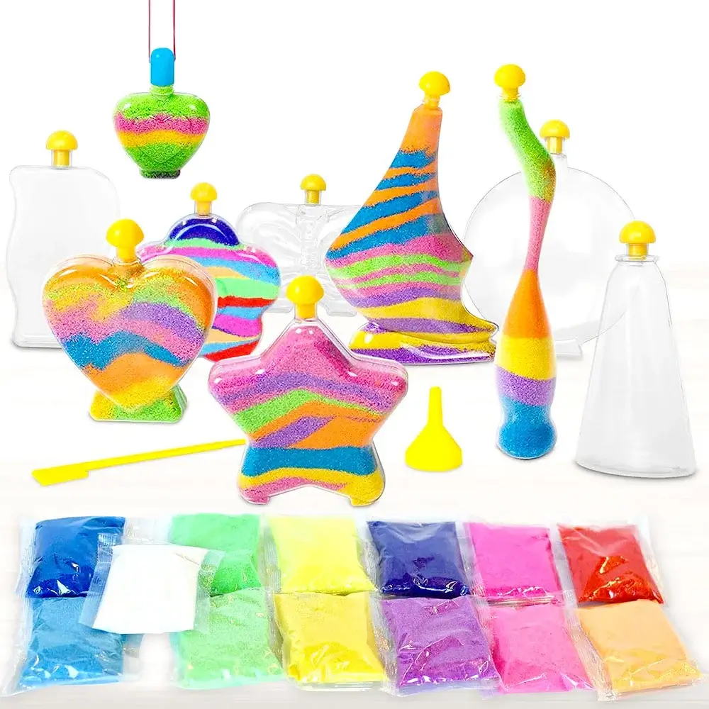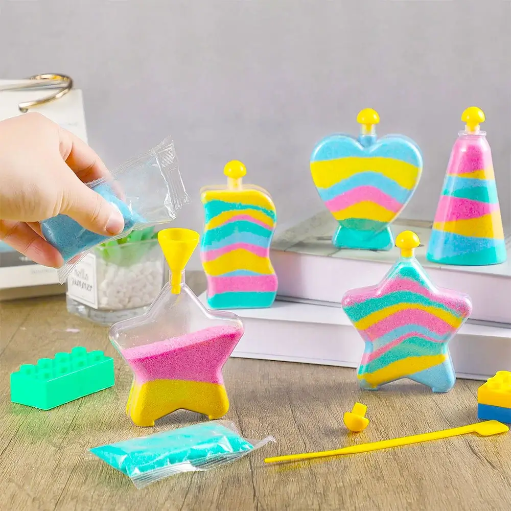 Ce jeu ludique encourage la créativité, la patience et la précision, tout en développant la motricité fine et la coordination œil-main. Grâce aux couleurs de sable variées, les enfants peuvent expérimenter, mélanger et créer des motifs spectaculaires dans leurs mini-bouteilles. Chaque création devient une véritable œuvre d’art qu’ils seront fiers de porter ou d’offrir à leurs amis.